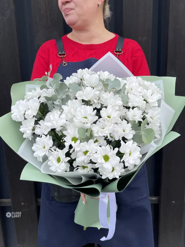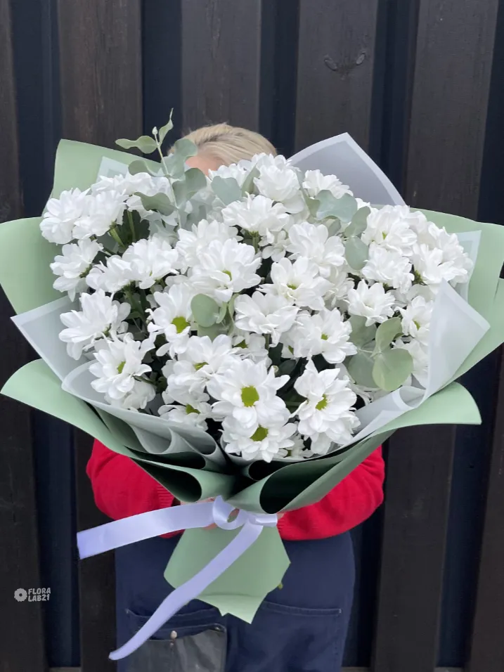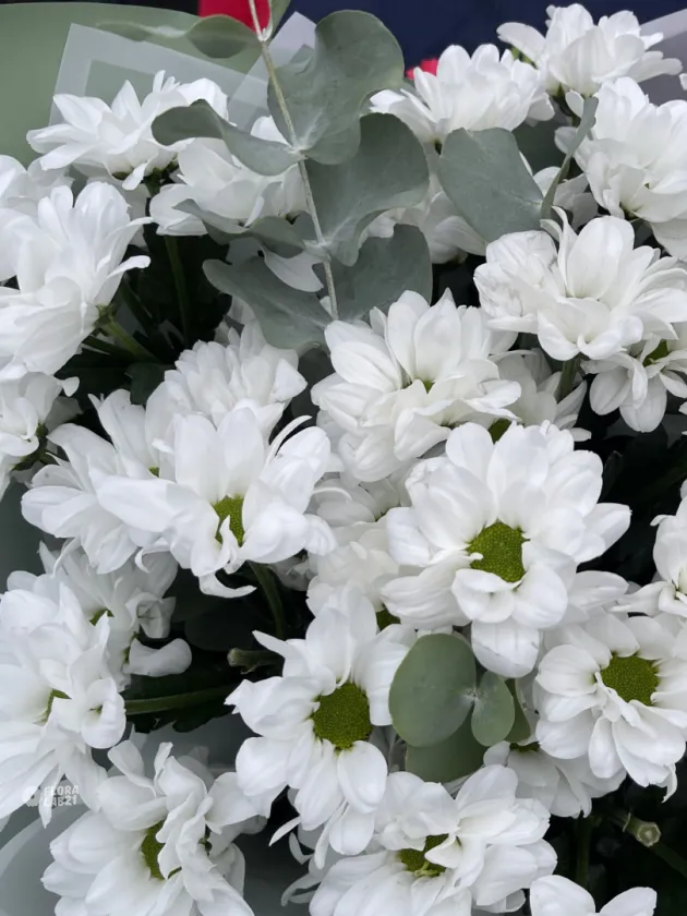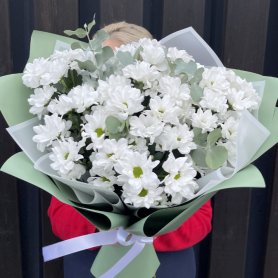 Дуобукет «Летом у бабули» — это гармоничное сочетание нежных ромашковых хризантем и свежего эвкалипта. Букет наполнен летними ароматами и создаёт атмосферу уюта и тепла. Идеальный подарок маме, супруге или бабушке, чтобы выразить заботу и любовь.