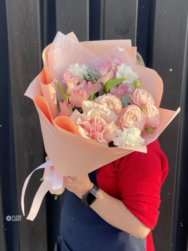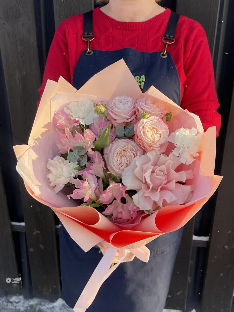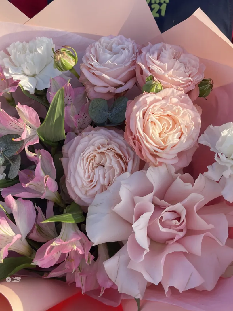 «Avantage» в переводе с французского - преимущество. Сборный букет комплимент с французской и пионовидной розой, диантусами и альстромериями. Этот букет станет прекрасным дополнением к любому празднику, даря ощущение изысканности и благодати. Он идеально подойдет для выражения благодарности, восхищения или просто для того, чтобы порадовать близкого человека.