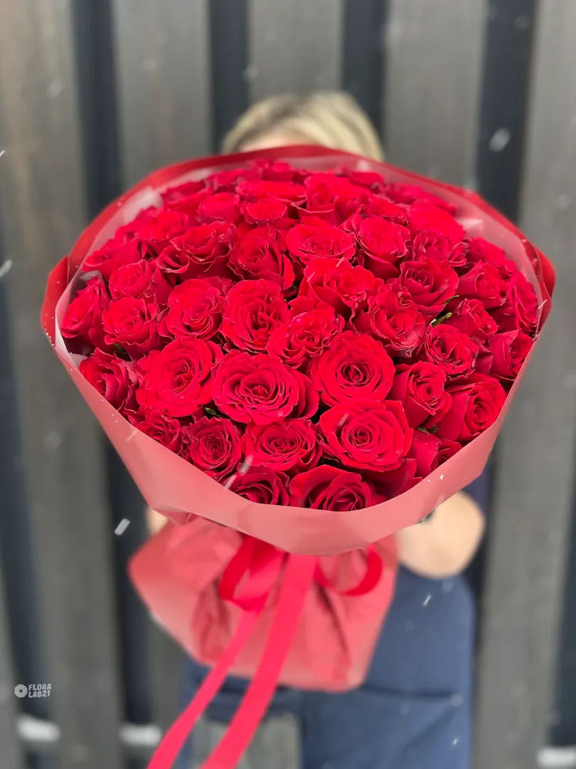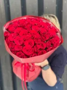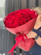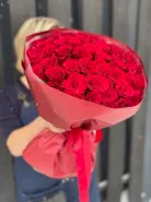 Страстный и элегантный букет из 51 красной кенийской розы с длиной стебля 40 см. Каждая роза излучает чувственность и страсть. Упаковка в алой дизайнерской бумаге подчеркивает их насыщенный цвет, создавая ощущение роскоши и изысканности.