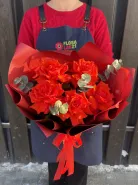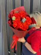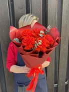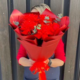 «Реномэ» по-французски означает «известный» или «знаменитый». Этот аккуратный букет комплимент подчеркнет уникальность и значимость вашего дорогого человека. Станет уместен в тихий семейный вечер, небольшой семейный праздник, да и просто без повода.Алые французские розы с веточками эвкалипта упакованы в стильную дизайнерскую бумагу.