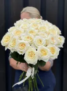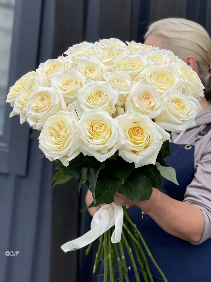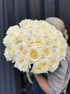Пионовидные розы Кэндллайт (Candlelight) цвета свежего сливочного масла с сердцевинками тёплого меда. У роз легкий аромат с нотками цитруса. Крупный эффектный бутон. Выигрышно смотрятся в монобукете.