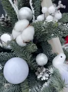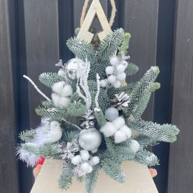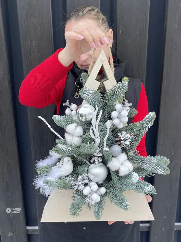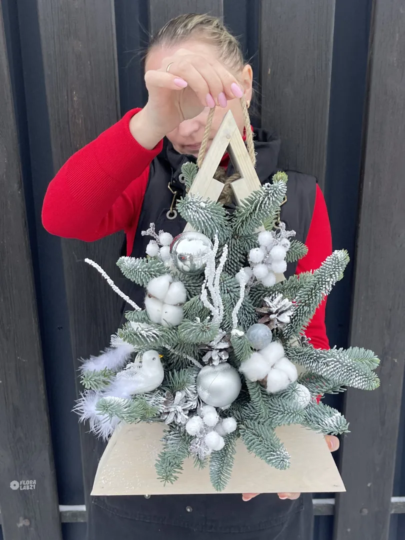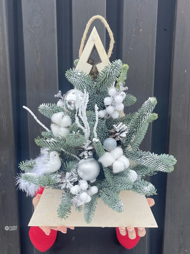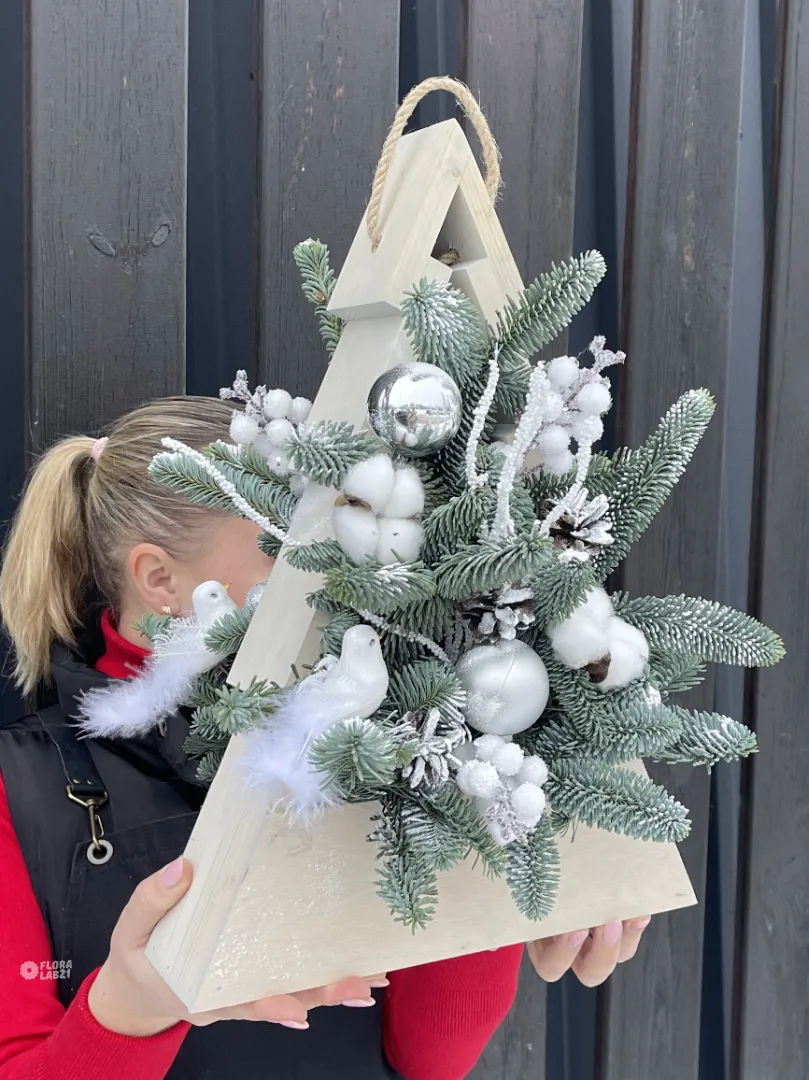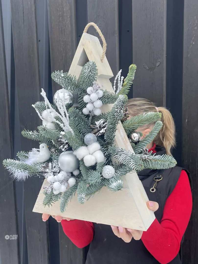 Деревянный ящик в форме елки, украшенный ветвями нобилиса, хлопком и яркими елочными игрушками, наполнит ваш дом праздничным духом. Он станет идеальным дополнением к новогоднему декору, принося радость вам и вашим близким. Погрузитесь в атмосферу волшебства!