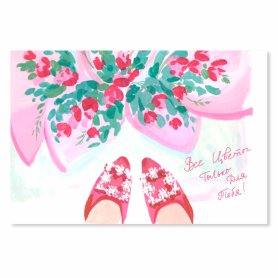 Дизайнерская открытка с авторскими рисунками придаст цветочному презенту камерности. А написанный нами от руки ваш текст приватности и душевности. Прочитав тёплые слова захочется её сохранить и перечитать позже.